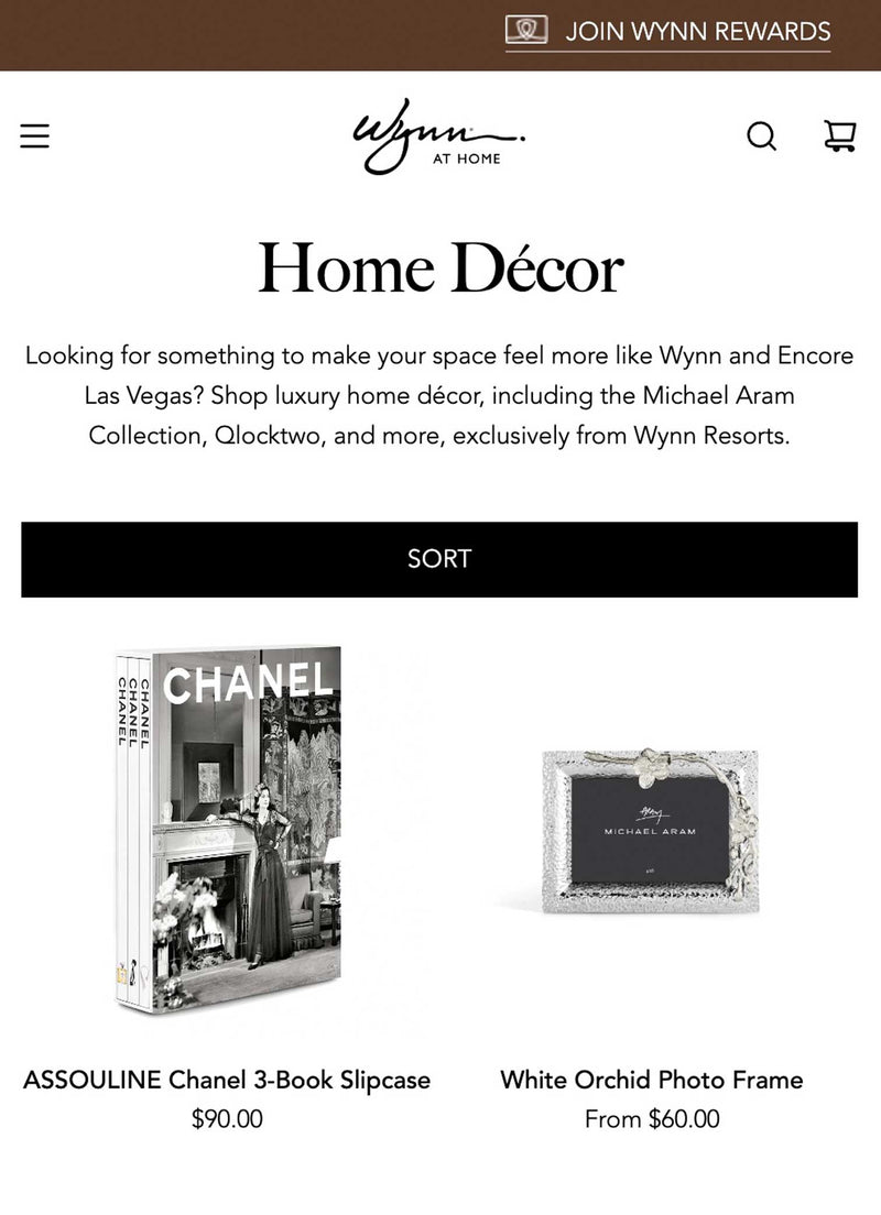 More expansion came with the introduction of luxury home good brands including Michael Aram, Assouline, and Aerin, plus unique resort-exclusive décor pieces, along with the opening of a beautiful brick-and-mortar shop inside of Wynn Las Vegas in 2020. Today, Wynn at Home continues to grow, setting the blueprint for success with subsequent Rockstar e-commerce partnerships.